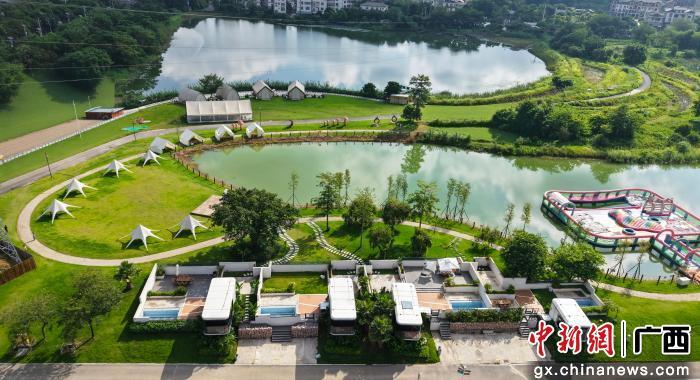 玉林高新区茂林镇鹿塘社区通过文旅融合与环境整治,提升了社区“颜值”与居民生活品质。图为鹿塘社区朝阳里营地。玉林市融媒体中心供图