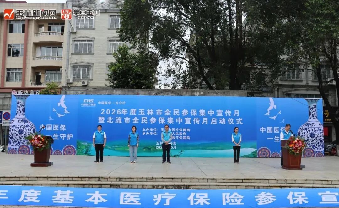 10月21日,2026年度玉林市全民参保集中宣传月暨北流市全民参保集中宣传月启动仪式在北流举行,活动主题为“中国医保,一生守护”,旨在通过集中宣传、政策解读、服务下沉等方式,推动社会保险覆盖更广、服务更优、保障更实。